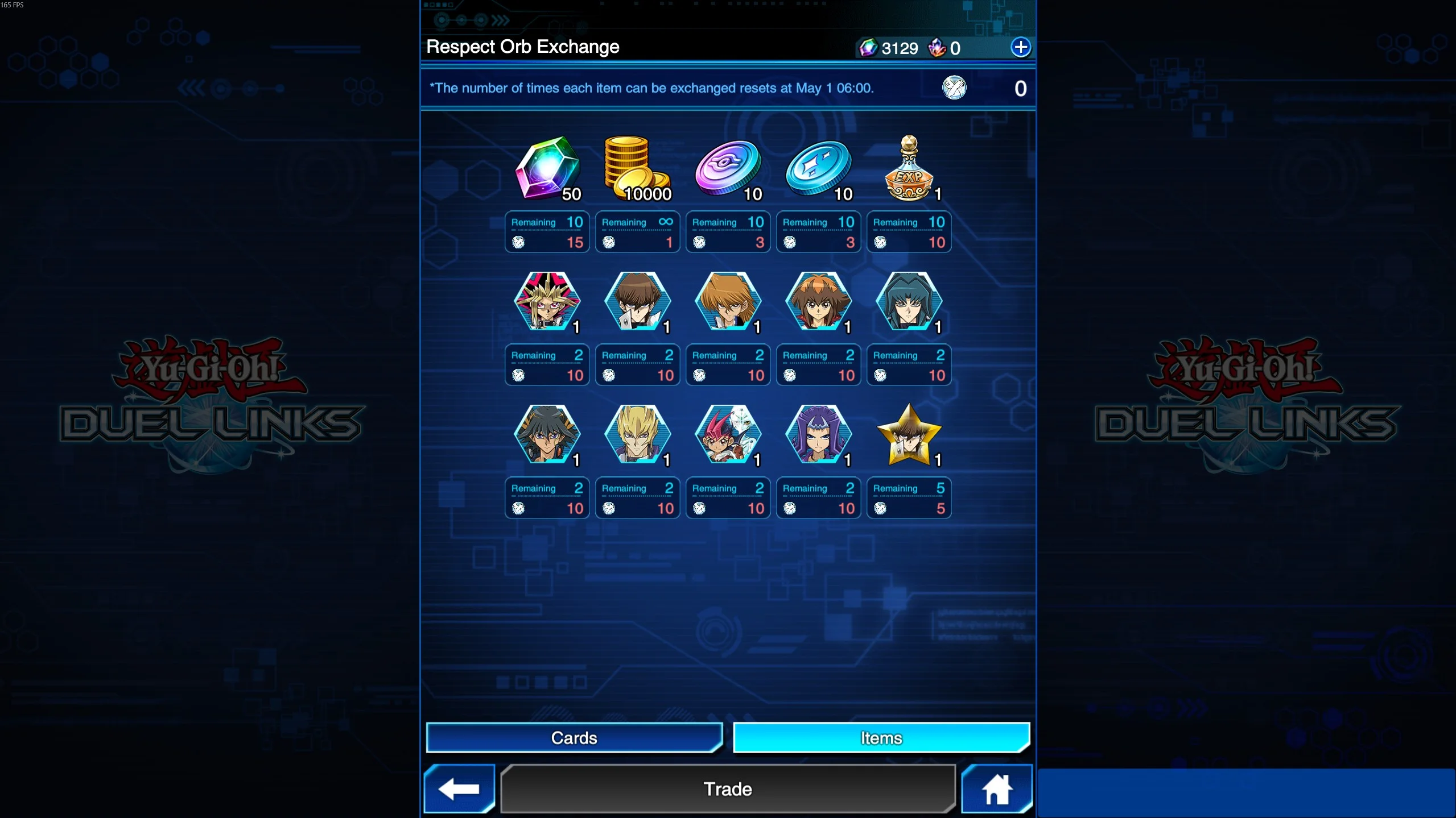 Respect Orbs can be exchanged at the Trader for Cards, Gems, Character Stamps and the new EXP Potion item - which lets you raise a Characters Level by 1. This resets on the 1st of every month.