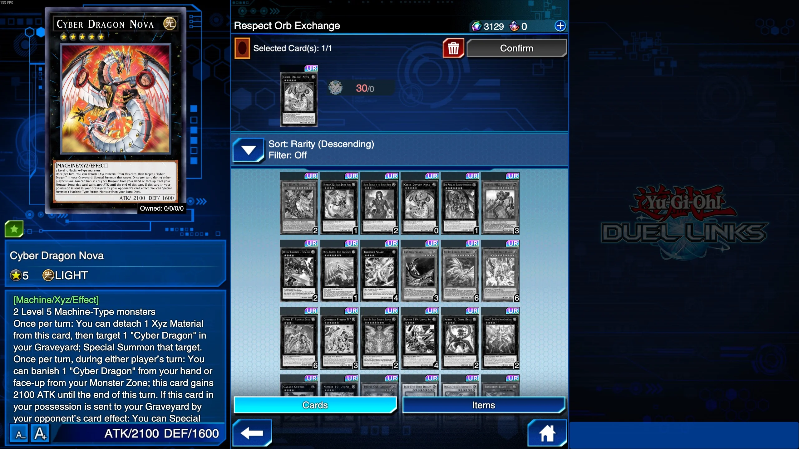 Cards cost 30 Respect Orbs each.